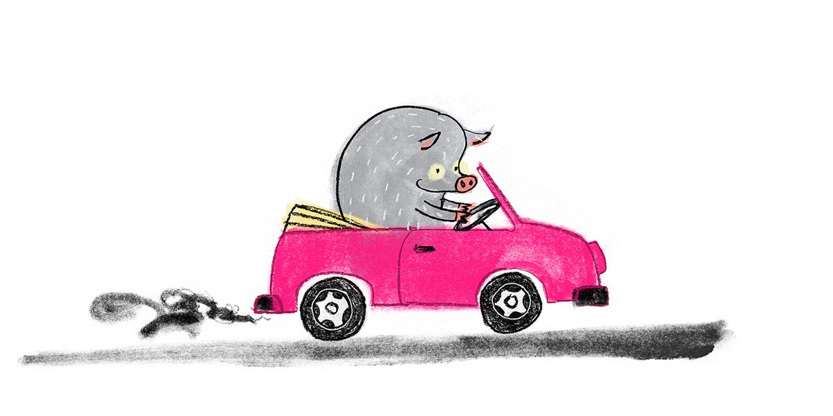 When Cecilia mentioned getting a driver’s license (and her skill of parallel parking!), I thought of this old work of mine where Daisy (yes, that’s her name) happily zooms off in her delightful hot pink convertible. Do you like driving?